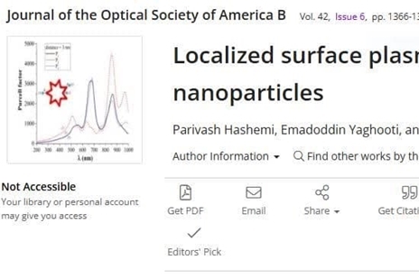 According to the news unit of Qom University’s Public Relations, Dr. Fereydoun Babaei's paper, in collaboration with PhD students specializing in condensed matter physics at Qom University, titled "Substituted Surface Plasmons in Complex Disc-Shaped Core-Shell Nanoparticles," has been published in the Journal of the Optical Society of America B and has been chosen as the editor's choice article.